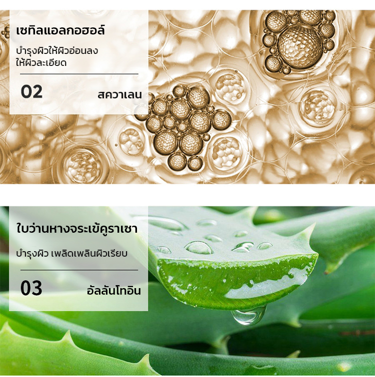 ✨อุดมด้วยส่วนผสมบำรุงผิวอย่างว่านหางจระเข้และวิตามินอี มอบความชุ่มชื้นและความชุ่มชื้นขณะกำจัดขน