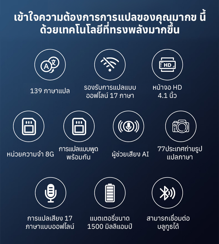 🌟ครบจบในเครื่องเดียว ทั้งแปลข้อความและเสียง - ผสานความสามารถแบบมัลติฟังก์ชั่น ทั้งแปลเสียงแบบเรียลไทม์ แปลข้อความออนไลน์ และการเรียนรู้ภาษา อุปกรณ์คู่ใจสำหรับนักเรียนและนักเดินทาง