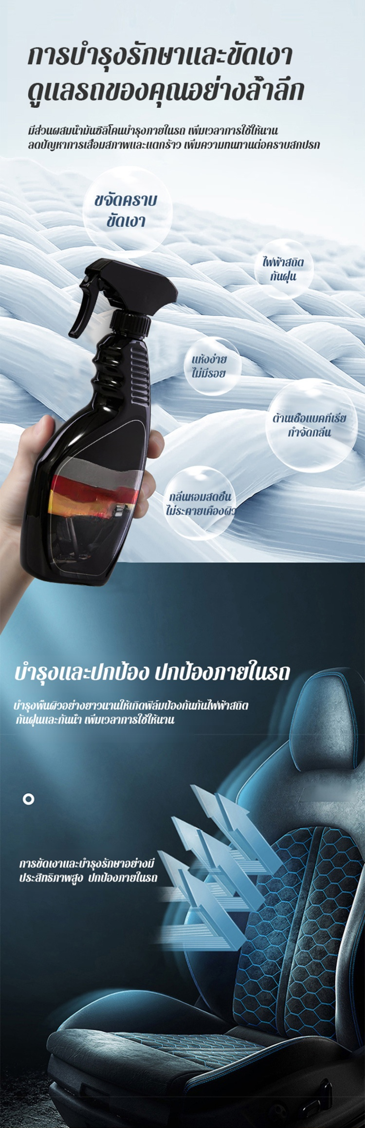 👉 ใช้งานง่ายและรวดเร็ว: เพียงทำความสะอาดพื้นผิว ฉีดพ่น รอให้ซึม และเช็ดให้แห้ง