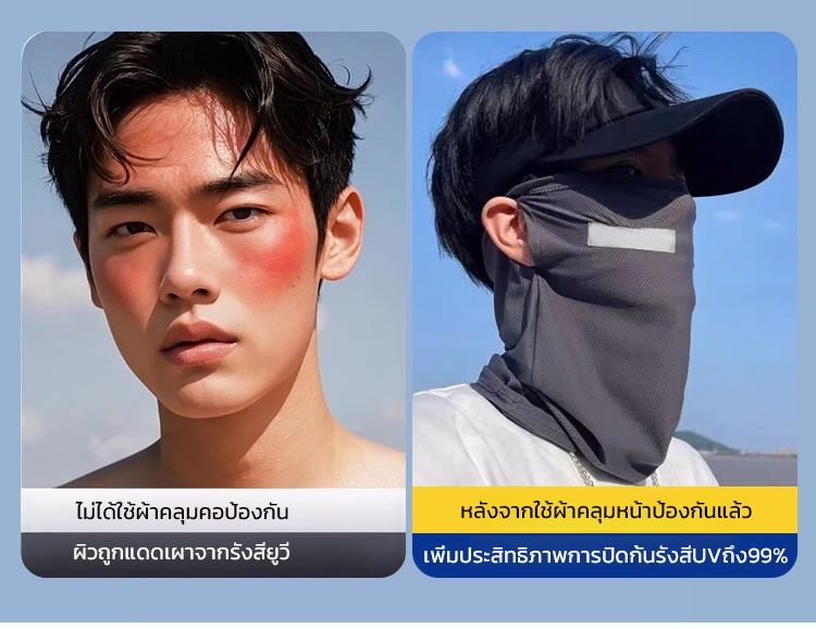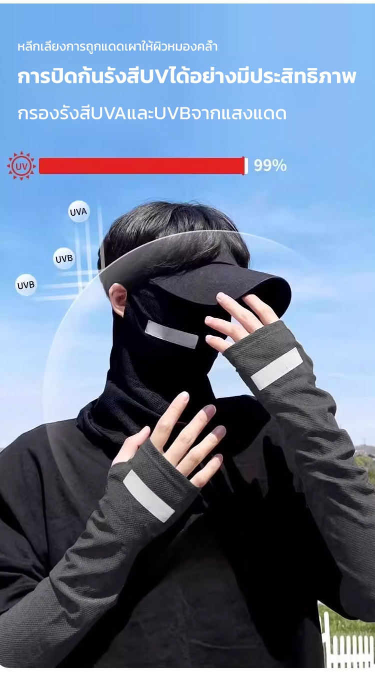 【ผู้หญิงผู้ชายใส่ได้】หน้ากากกันแดดแบบเต็มหน้า Ice Silk